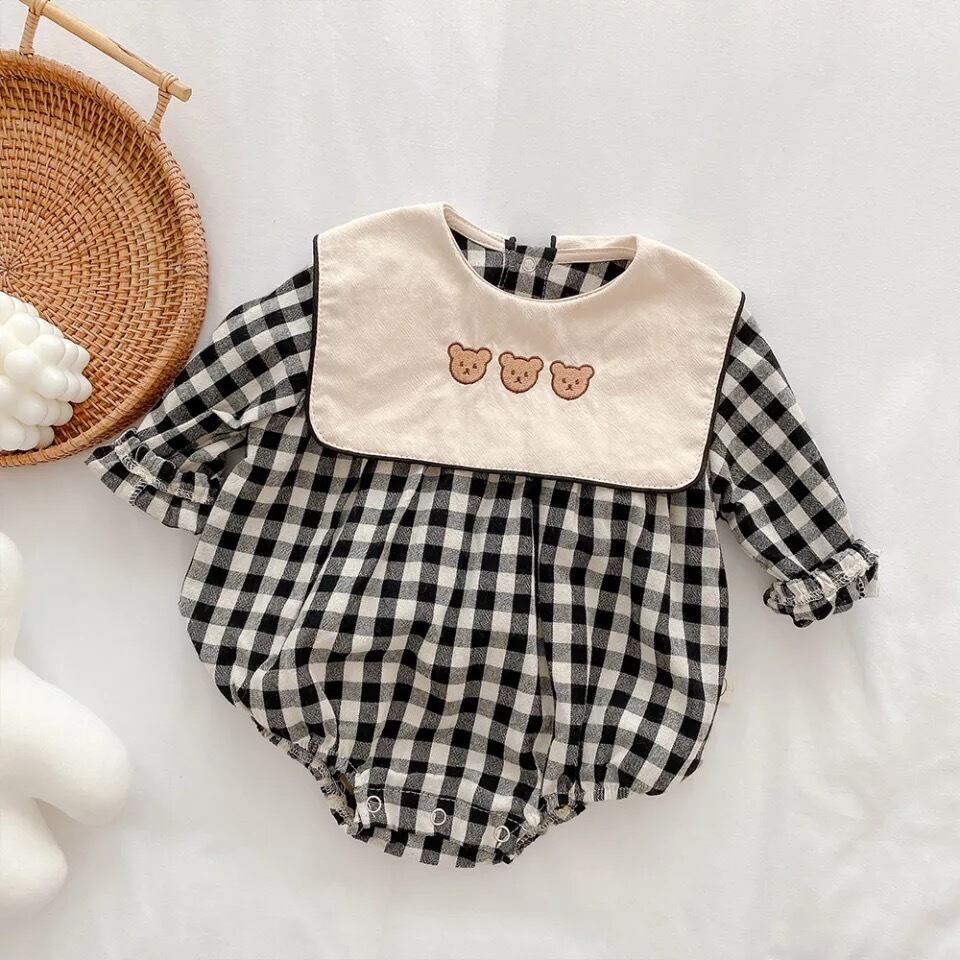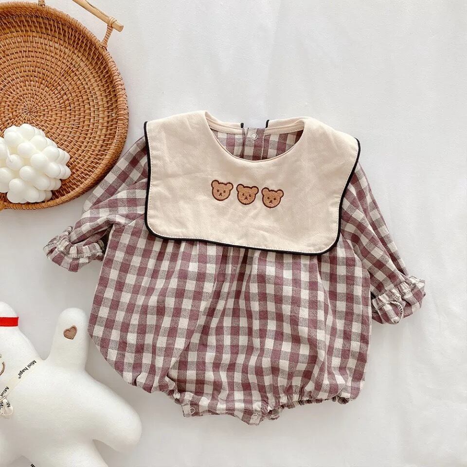 ☆くまちゃん襟チェックロンパース ○くまちゃん襟がキュート!チェック柄で可愛いです♡ ✔️size: 66〜90 ✔️color:purple / black